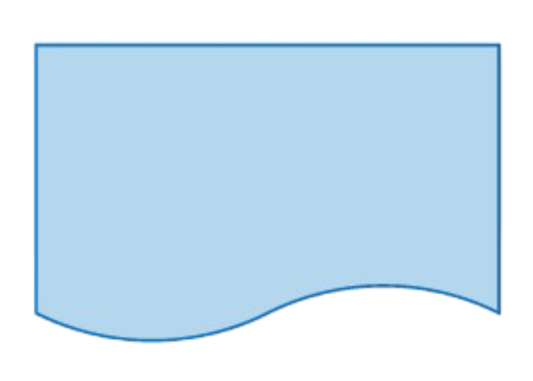 El símbolo de Documento representa un documento único generado, recibido o utilizado en un proceso. Parece un rectángulo con un borde inferior ondulado (curvado), asemejándose a una hoja de papel.