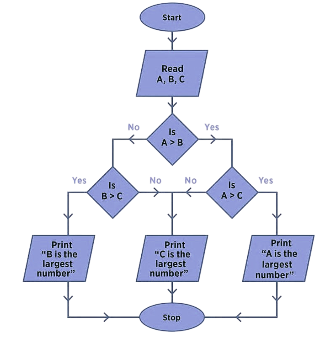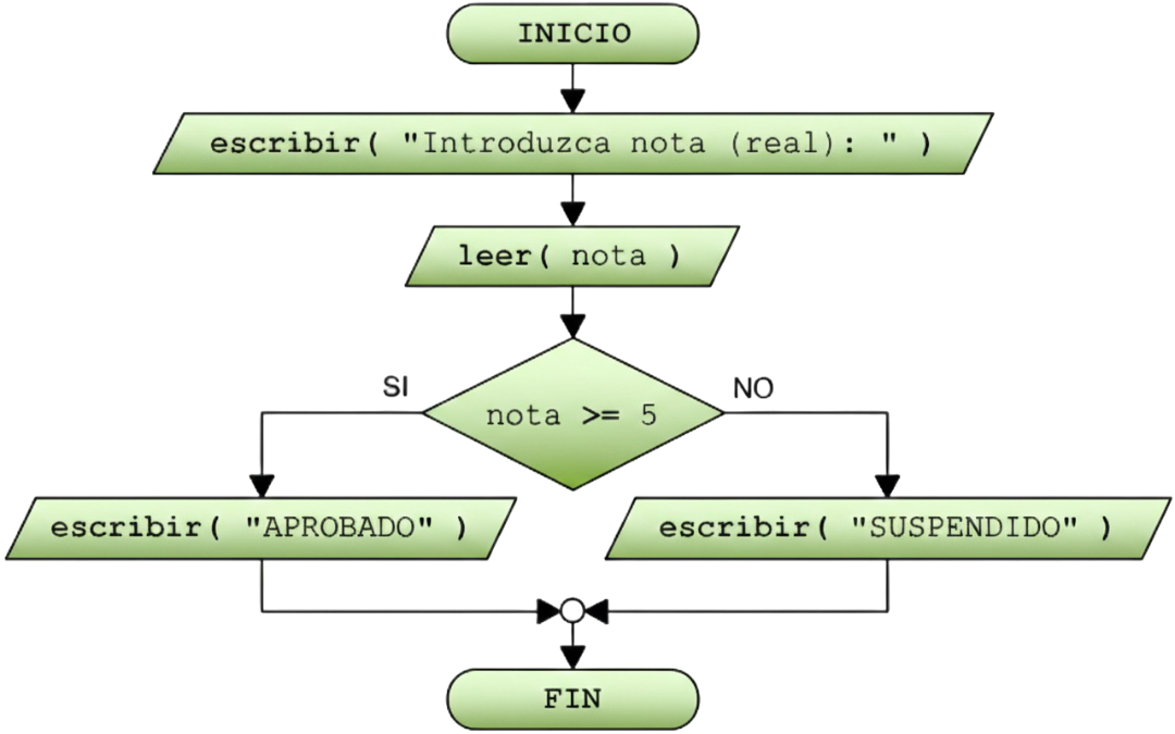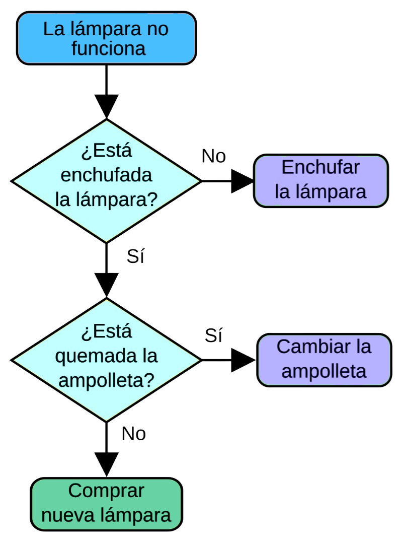 Solo los símbolos de decisión (rombos) pueden tener más de una línea de salida (por ejemplo, sí/no, verdadero/falso).
